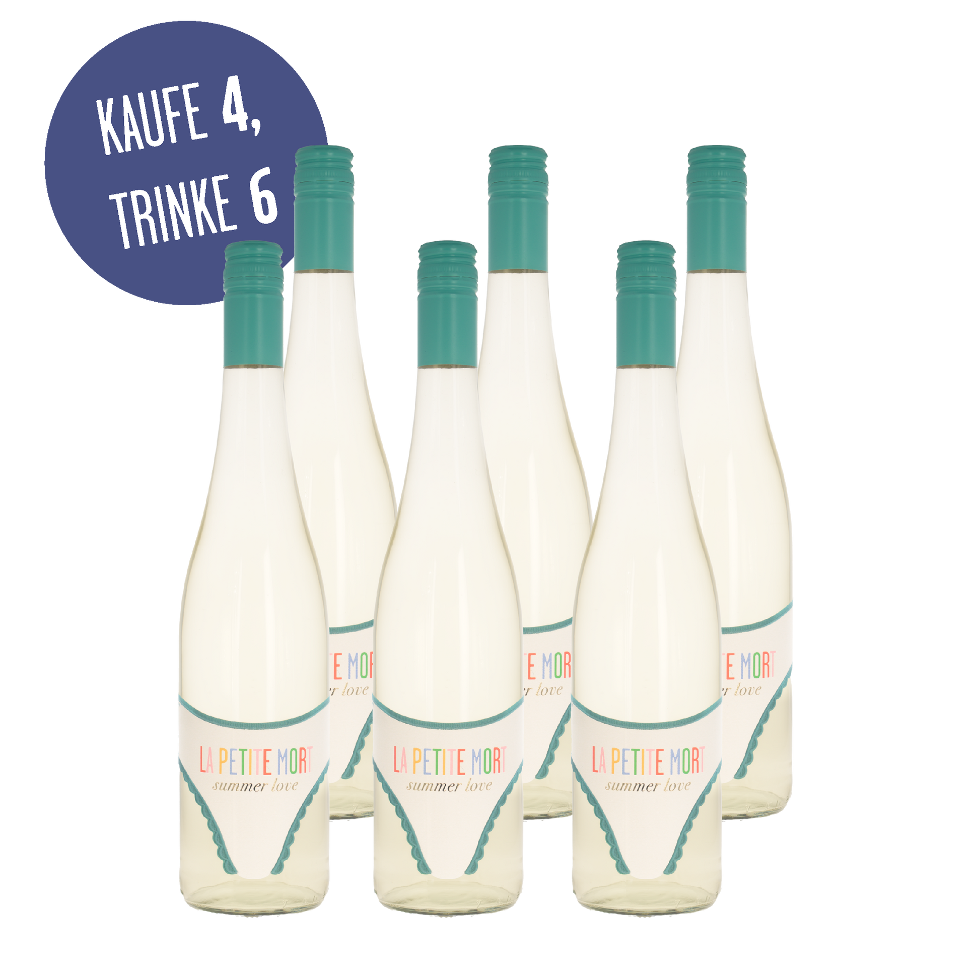 Kaufe 4, bekomme 2 gratis. 6 Flaschen. 4 bezahlen. Weil der Frühling zu kurz ist, um auf den Sommer zu warten.